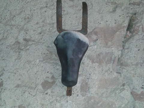 Archaischer Stier: bei den Hörnern gepackt